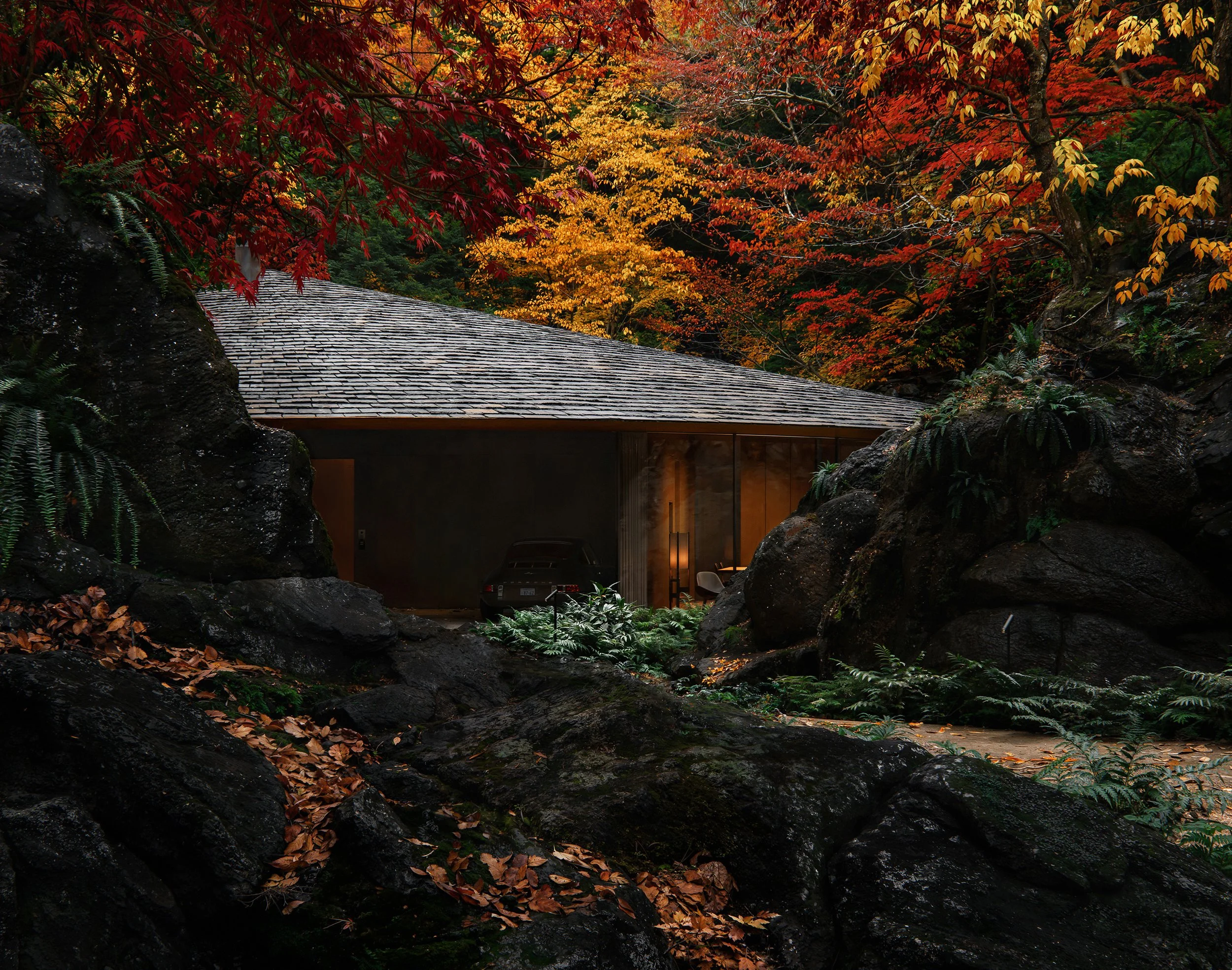The site in Kitakaruizawa is not treated as a blank canvas, but as an existing condition rich with memory, geology, and presence. Rocks, trees, slopes, and voids are not obstacles to overcome, but forces to listen to. The project emerges from this listening — shaped by the ground rather than placed upon it.