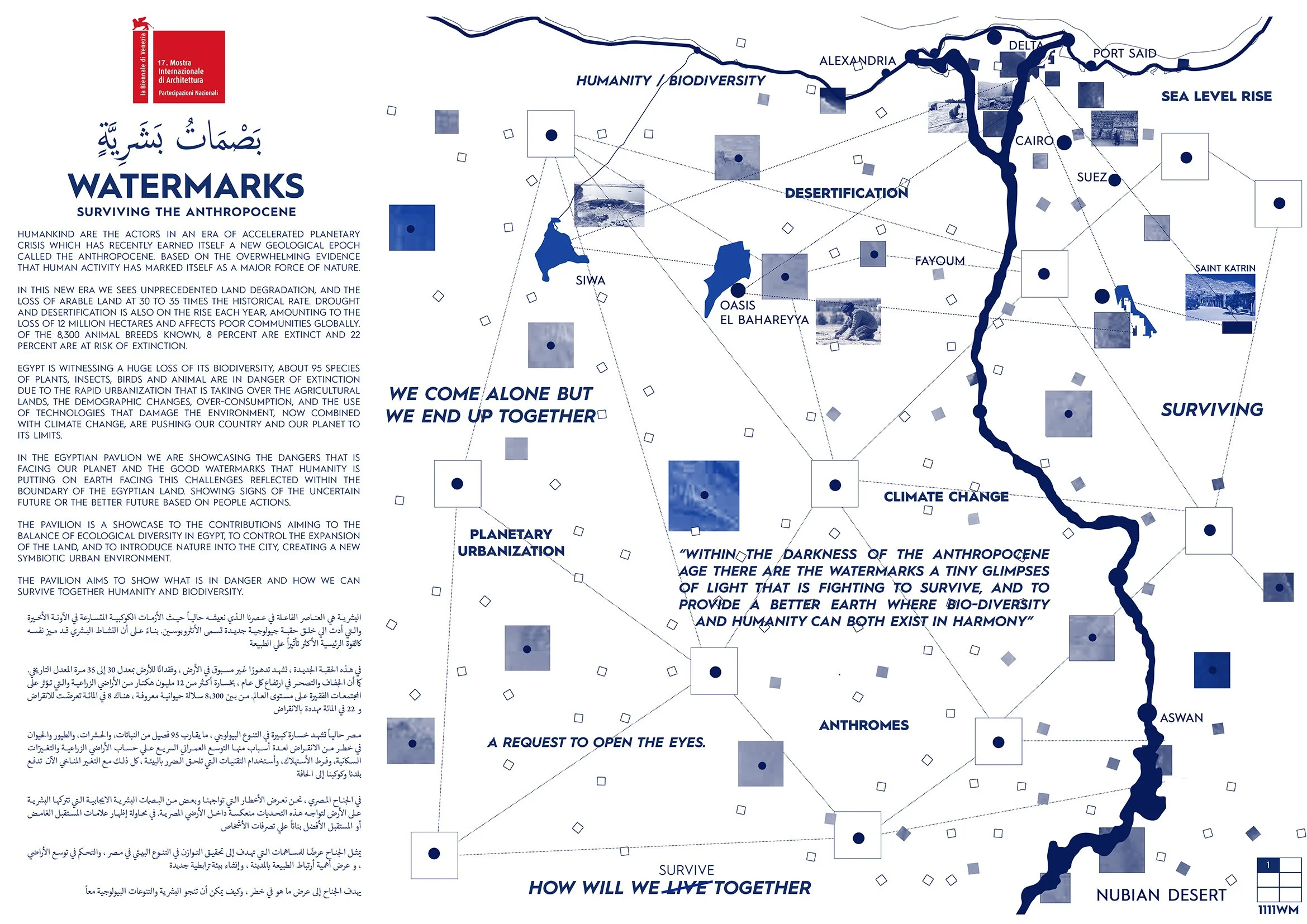 Amidst the shadows of the Anthropocene, a new geological epoch marked by unprecedented human impact on our planet, there are faint glimmers of hope. These glimmers represent our collective desire to forge a better Earth, one where biodiversity and humanity coexist in harmony. The Egyptian Pavilion at the Venice Biennale is an exploration of this paradox, where we confront the dire challenges posed by the Anthropocene while celebrating the positive watermarks humanity is leaving on Earth.